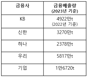 이미 4대 금융(KB·신한·하나·우리)을 포함해 대부분의 금융사는 매년 발간하는 지속가능보고서에 스코프3를 비롯해 전반적인 탄소 배출량을 자체적으로 측정해 기재하고 있다. 일각에서는 적어도 ESG의 'E'에 해당하는 환경 부문은 측정 범위나 방법이 중구난방이기 때문에 이 지표가 신빙성이 없다고 분석한다.