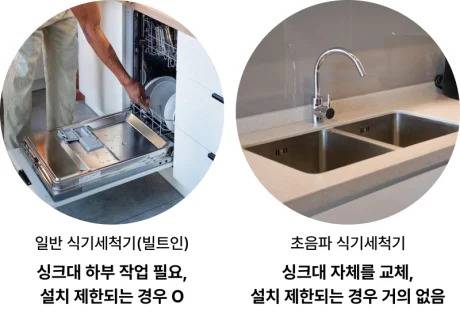 이에 반해 초음파 식기세척기는 싱크대 자체를 바꿔주는 것이기 때문에 설치가 제한되는 경우가 거의 없습니다.