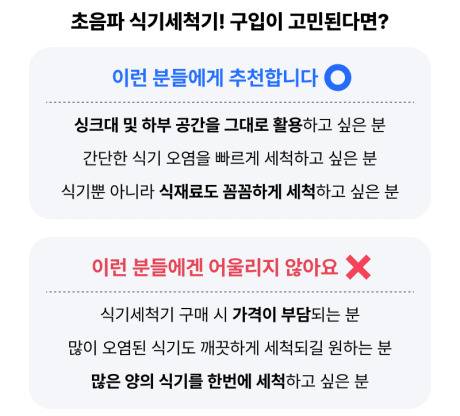 그렇다면 지금부터는 초음파 식기세척기의 세척력, 가격, 사용편의 면에서 장·단점을 자세히 알려드리도록 하겠습니다.