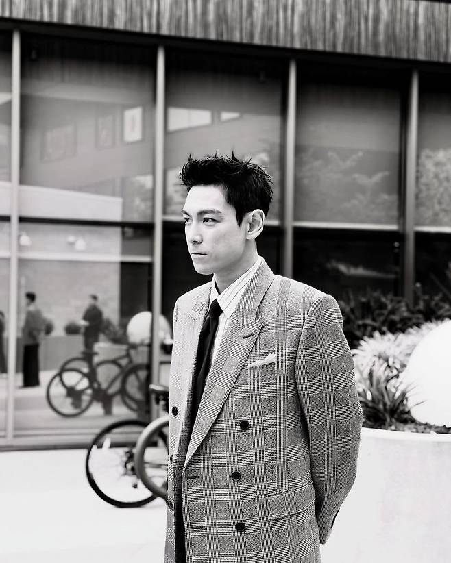 최승현의 흑백 인스타그램 사진이 단번에 시선을 사로잡았다. 도회적인 건물 외관을 배경으로 촬영된 이번 컷은 깔끔한 체크 패턴의 더블 브레스티드 수트와 섬세하게 정돈된 헤어스타일이 어우러져 클래식하면서도 강렬한 분위기를 자아낸다.