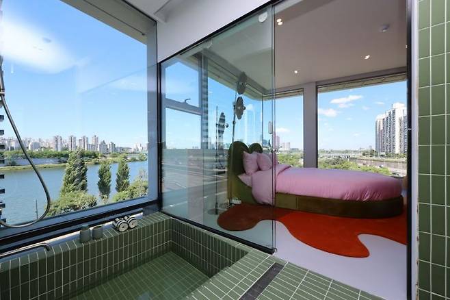 스카이 스위트는 서울시가 지난달 16일 한강 위 전망 카페였던 '직녀카페'를 개조해 144.13㎡(약 44평) 규모로 만든 호텔이다.