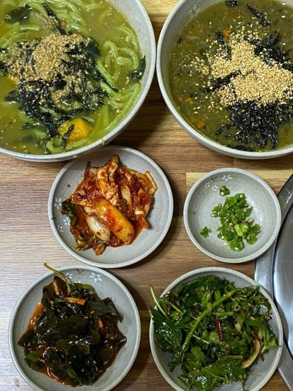 태양식당의 대표 메뉴인 따개비칼국수는 따개비 내장을 갈아 진하게 우려낸 국물과 쫄깃한 초록색 면발의 조화가 일품입니다. 제주도의 보말 칼국수와 비슷하지만, 울릉도만의 독특한 맛을 느낄 수 있습니다.