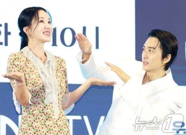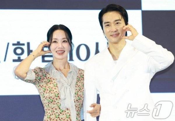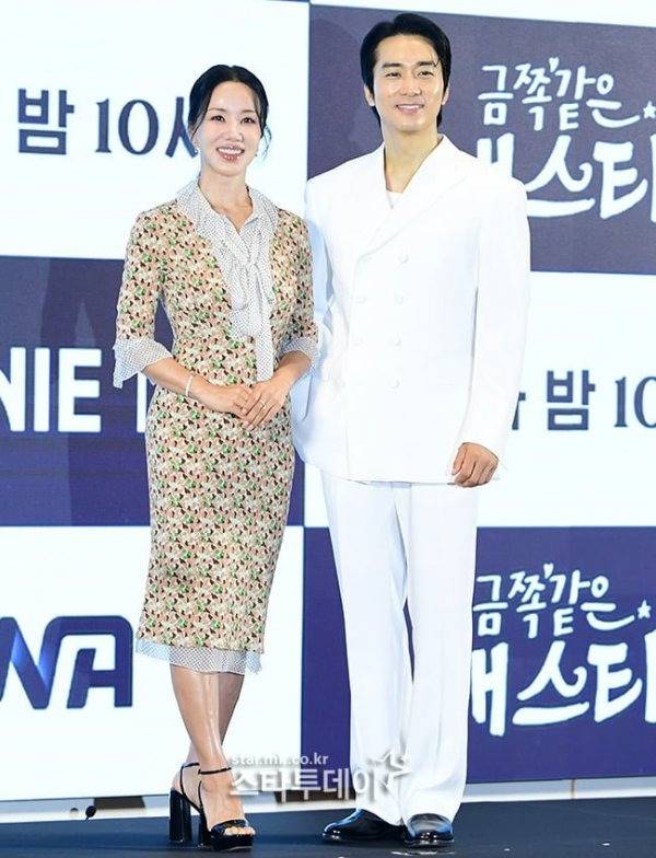 송승헌의 모던한 화이트 슈트와 엄정화의