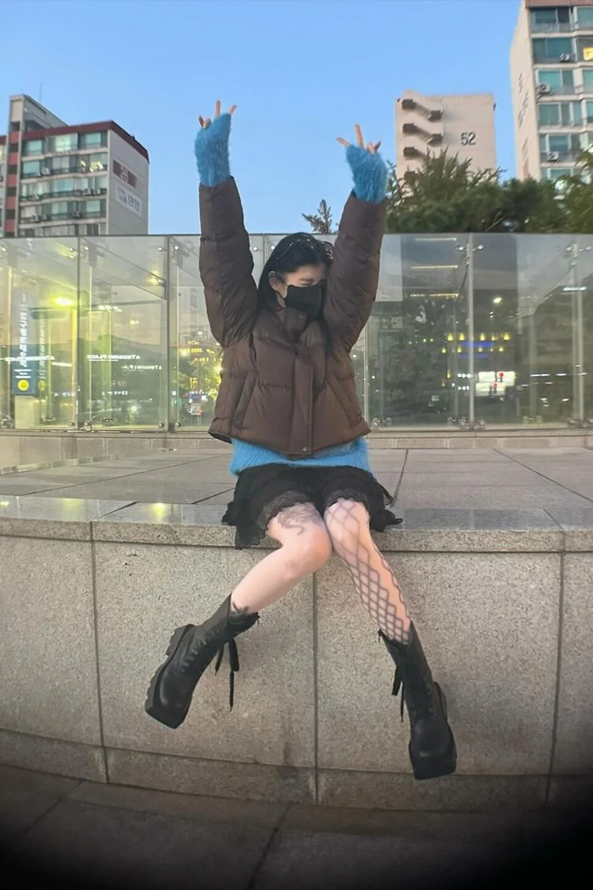 심플한 룩에 알록달록한 스타킹만 착용해도 트렌디한 스타일링이 완성된다. 제니는 원색 스타킹을 짧은 하의에 매치해 강렬한 룩을 선보였다. 최근 팬츠리스 룩으로 화제를 모은 르세라핌 허윤진 역시 회색 미니스커트에 빨간색 스타킹과 빨간 구두를 착용하며 과감한 컬러 대비를 즐겼다.