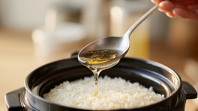 세척 단계에서 넣으면 쌀에 흡수되지 않아 효과가 떨어지므로 반드시 밥을 짓기 직전에 활용하는 것이 중요하다.
