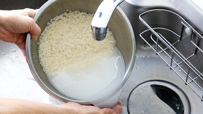 세척 단계에서 넣으면 쌀에 흡수되지 않아 효과가 떨어지므로 반드시 밥을 짓기 직전에 활용하는 것이 중요하다.