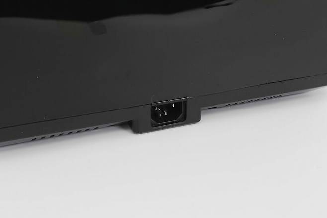뒷면 아래쪽에는 전원 케이블 연결단자가 있다. 케이블이 분리형이기 때문에 이동 또는 보관 시 공간을 절약할 수 있고, 케이블 손상 시 간단하게 교체할 수 있다.