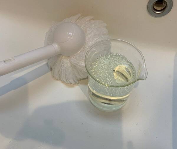 2. 만들어진 용액을 변기 내부, 특히 물이 고인 부분과 테두리 안쪽에 골고루 부어줍니다.
