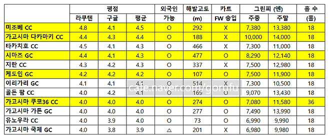 일본 골프 정보 모음 글: https://cafe.naver.com/gorufu/437