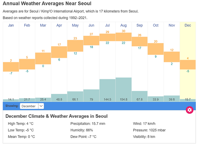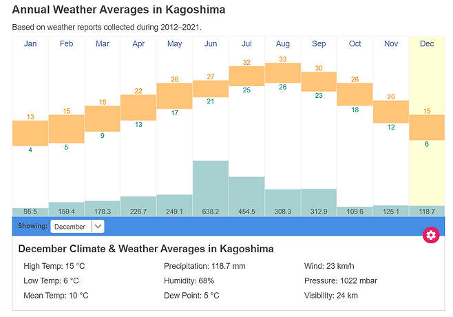 아래 차트를 보시면 가고시마의 12월에서 2월 중에는
