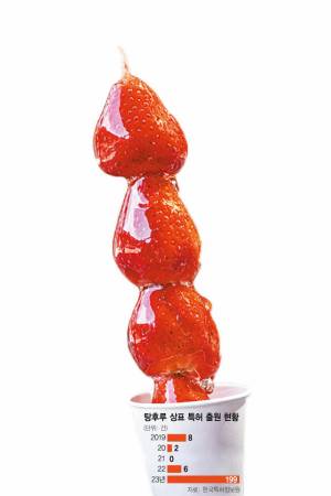 각종 논란에도 탕후루 가게는 폭발적으로 늘고 있는 추세다. 공정거래위원회에 따르면 가장 대표적인 프랜차이즈 달콤왕가탕후루의 매장 수는 △2020년 16개 △2021년 11개 △2022년 43개에서 현재 약 420개로 지난해 대비 10배가량 늘어났다. 한국특허정보원에 따르면 탕후루 상표 특허 출원도 2019년 8개에서 올해 199개로 급증했다.