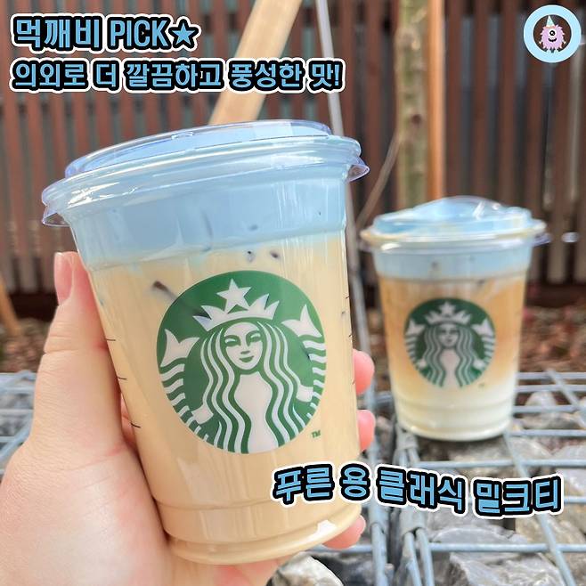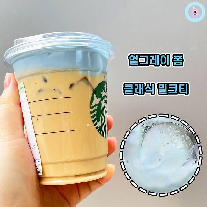 다음은 <스타벅스 푸른 용 클래식 밀크티>입니다! 클래식 밀크티는 스타벅스에서 누적 100만 잔 이상이 팔린 인기 메뉴예요. 비주얼이 상대적으로 단조로운 편이라 시선이 덜 갔지만, 얼그레이 폼이 밀크티와 더 잘 어울릴 것 같다고 생각되어 맛은 기대가 되었어요.