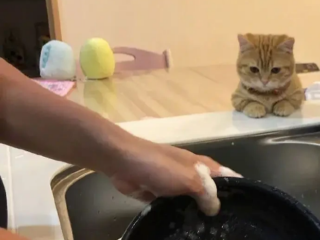 설거지를 하러 싱크대에 서면 어김없이 발 밑을 맴도는 고양이. 작은 앞발로 제 발가락을 톡톡 건드리던 작은 행동이, 지금은 하루 중 가장 기다려지는 순간이 됐어요. 제가 그릇을 씻는 동안, 고양이는 싱크대 옆 테이블 위에 올라와 저를 유심히 바라보곤 해요. 마치 “다 잘 하고 있니?”라고 묻는 것 같은 눈빛으로요.