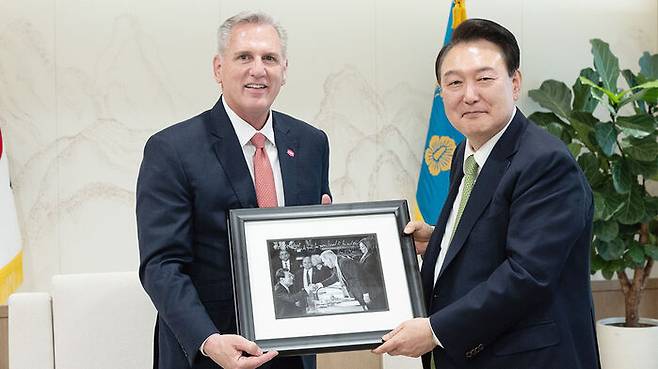 윤 대통령, 매카시 전 미국 하원의장 접견…한미동맹 강화 공감