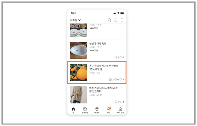 피드 광고는 유저들이 가장 많이 보는 당근 홈에 노출하는 광고야. 주목도가 높은 피드 광고는 간편 모드와 전문가 모드, 2가지 모드에서 모두 진행할 수 있는 광고 상품이야✌