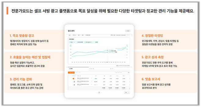 전문가 모드는 간편모드에 비해 보다 세밀하게 광고를 운영할 수 있는 광고 모드야. 광고 목표별로 캠페인을 관리하고 정밀한 타겟팅을 통해 효과적으로 광고를 운영할 수 있지✌