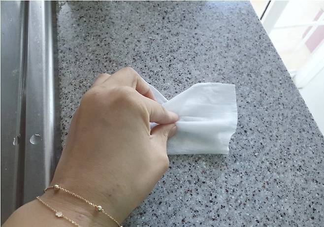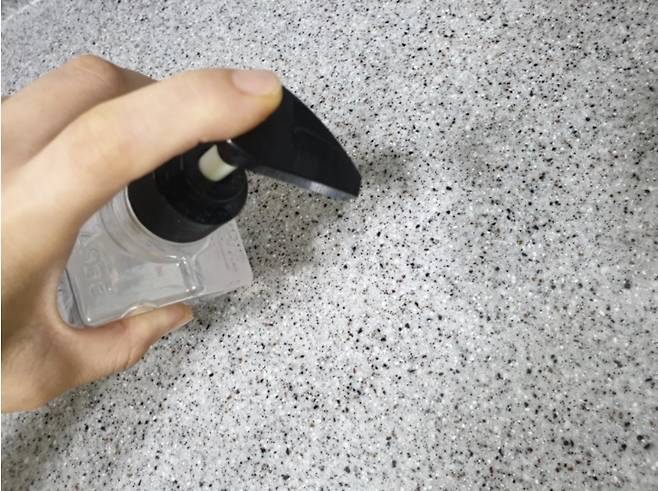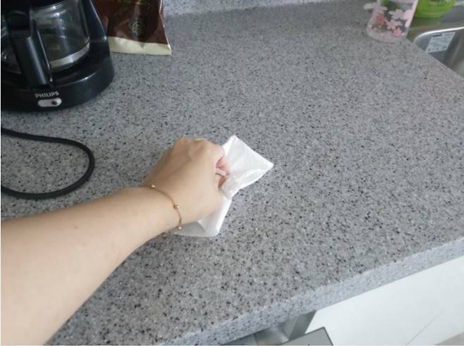 남아도는 손소독제로 싱크대 상판을 닦아주면 속이 시원합니다