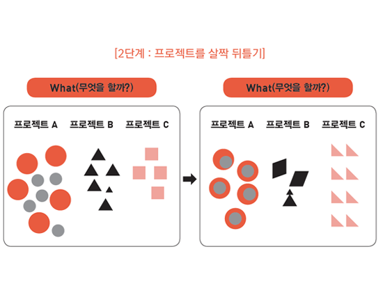 하지만 우리가 어떻게 매번 새로운 사업을 추진하겠어요? 불가능하죠. 이럴 땐 앞에서 배운 기획의 기술을 활용해 평범한 일상 업무를 새롭게 보이도록 살짝 바꿔보면 어떨까요.