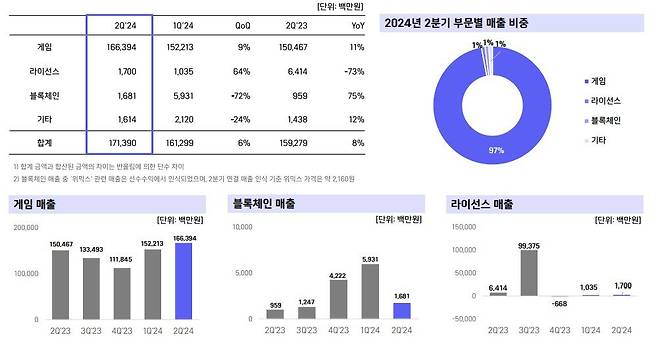 ● 위메이드맥스 - 2024년 2분기 영업비용 199억 원(전기 +7%, 전년 +36%) ㄴ 2분기 영업비용은 매출연동 지급수수료 증가 등으로 전분기 대비 증가 ㄴ 웹게임 '프리프 유니버스' 등 매출연동에 따른 지급수수료 증가와 '드래곤 꺼어억!' 신작 출시에 따른 광고선전비 증가분 반영
