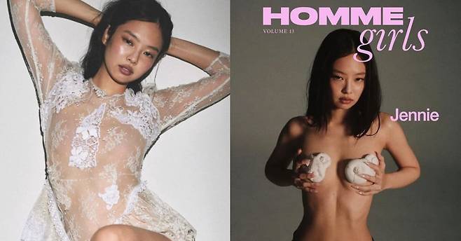 걸그룹 '블랭핑크' 소속 가수 제니(JENNIE)의 파격적인 상반신 노출 화보가 공개됐습니다.