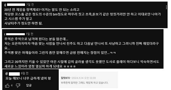 일부 유저들은 즐겁게 게임을 했다는 의견을 남기기도 했다. 부족한 대로 게임에 참여했다는 댓글도 있다. 특히 BM은 정액제에 그쳐야 한다는 유저가 적지 않았다.