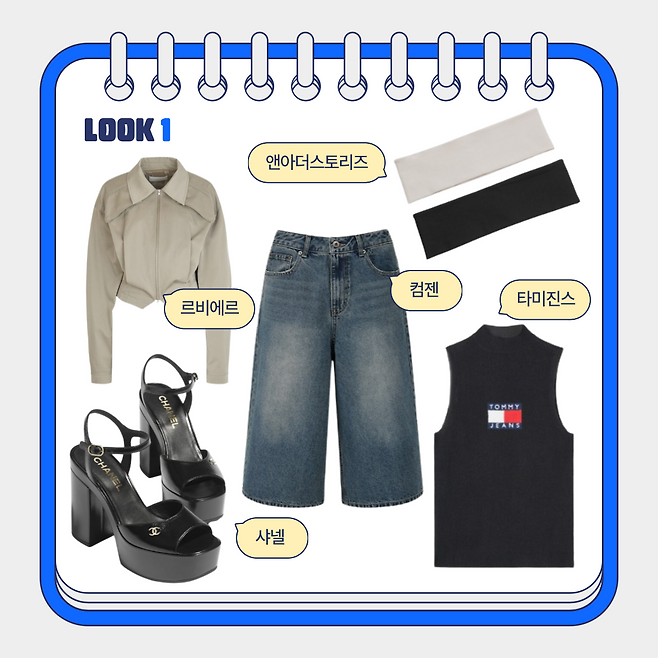 첫 번째 룩은 힙하고 귀여운 룩이야!