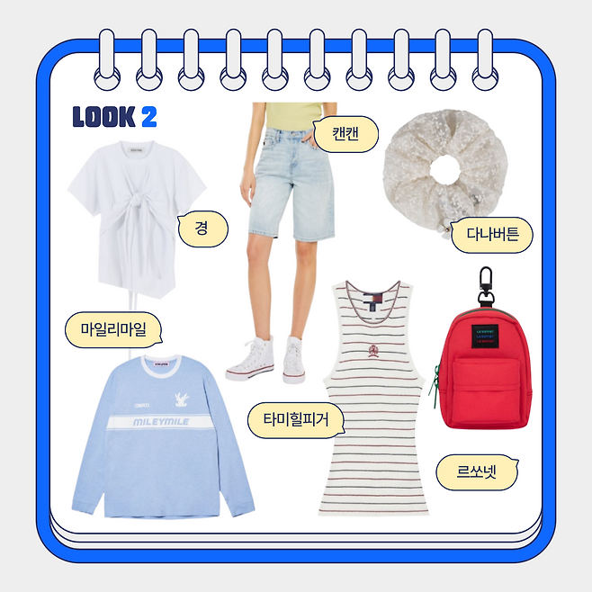 두 번째는 통통튀는 청량한 룩이야!