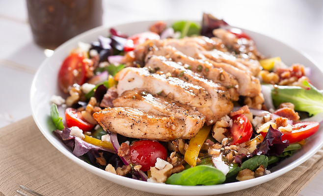 그릭 치킨 샐러드는 고단백 저칼로리 점심 메뉴로 인기를 얻고 있다. 닭가슴살과 페타 치즈가 풍부한 단백질을 제공하며, 신선한 채소와 올리브유 드레싱으로 지중해식 풍미를 더한다. 이 샐러드는 영양가가 높으면서도 칼로리가 낮아 체중 감량에 도움이 된다.