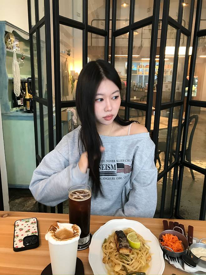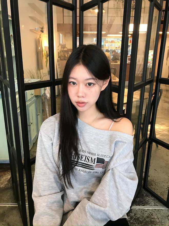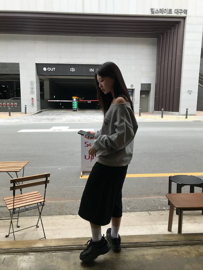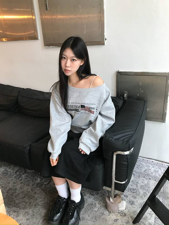 🔘 Look 1. 시험기간 힙한 꾸안꾸, 원숄더 맨투맨
