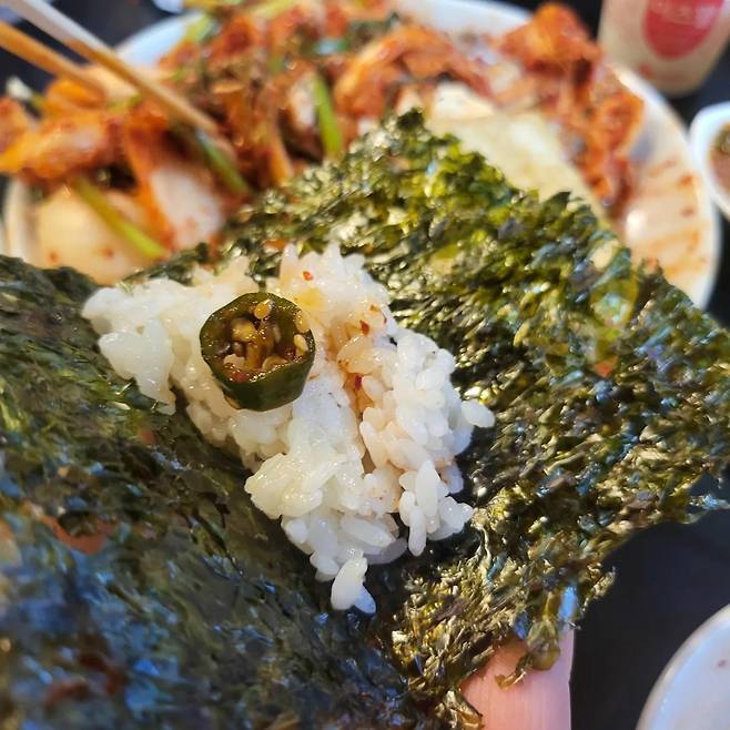 또한, 통으로 내어 주시는 '돌김'도 인상적이다. 양념을 해서 구운 조미김이 아님에도 상당히 맛이 좋으며, 담백한 쌀밥과의 조합이 뛰어나다. 김치와 함께 싸서 먹기도 하고 맨입으로 먹기도 하며, 식사의 흥을 돋워준다.