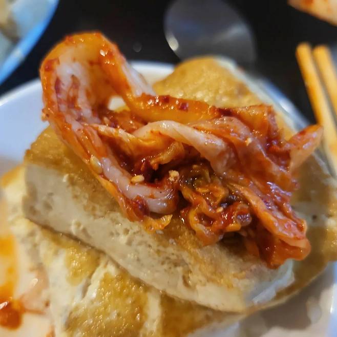 백종원 유튜브 '님아 그 시장을 가오' 삼척 편에는 묵직한 문어 한상 차림이 소개 되었다. '문어숙회' 한가지로 승부한다는 '맛과향이있는집'이 주인공이다. 앉자마자 처음으로 나오는 건 바로 '굴김치 3층 석탑'. 백종원이 "이것만 해도 끝났다"라는 극찬을 아끼지 않았다. 아삭아삭한 배춧잎에 갓김치 수준으로 양념한 김치 더미 안에 굴이 싱싱하게 들어 있는 걸 볼 수 있다. 먹어도 먹어도 줄지 않으니 '굴 러버' 들에겐 최고의 반찬인 셈.