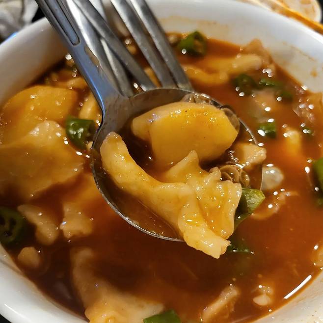마지막 대미를 장식하는 '수제비'. 문어 삶은 물에 그대로 수제비를 떠서 얼큰하게 내어 주신다. 이미 배가 부를 대로 부르지만 마지막 힘을 내어 한 입 맛보면, 감칠맛 넘치는 국물 한 입에 다시금 식사를 이어나갈 수 있는 원동력이 된다. 배가 터질 듯 푸짐하게 내어주는 맛있는 한 상이 이 곳의 인기 비결인 만큼, 오랫동안 삼척에서 맛볼 수 있기를 바란다.