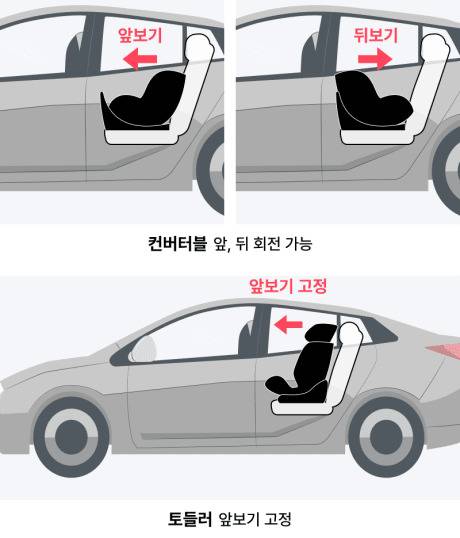 특히, 컨버터블이 작아보이기 시작하는 3~4세 시기에 신체 사이즈를 충족하지 않았음에도 섣불리 넘어가는 경우, 안전벨트가 목을 감아 중상을 입을 가능성이 높아지므로 반드시 주의가 필요합니다.