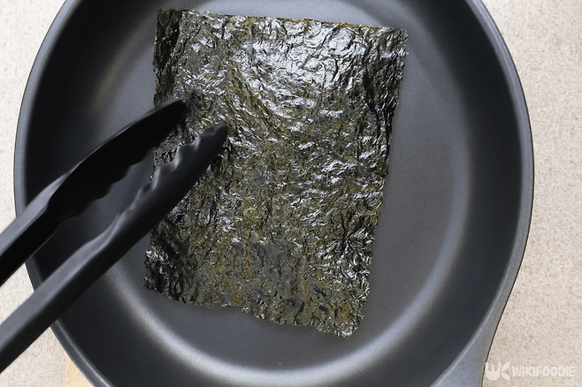 - 김은 오래 구우면 쓴맛이 나므로 10초 이내로 뒤집어가며 굽는다.