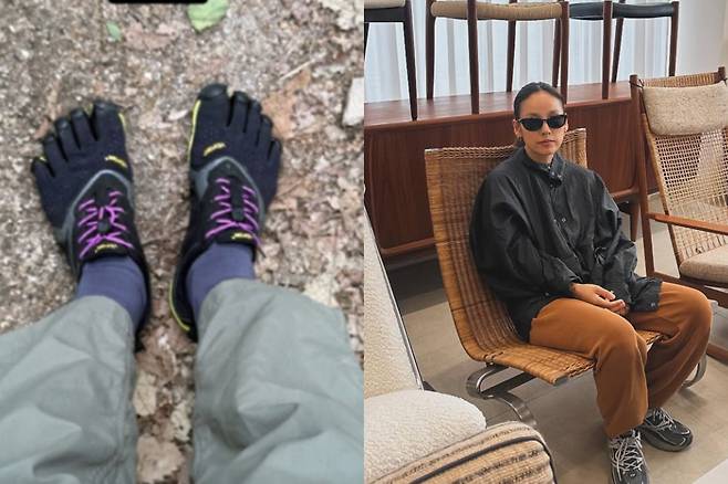 보통 운동할 때 주로 착용하는 발가락 신발을 자연스럽게 소화하며, 이효리만의 힙한 스타일로 시선을 사로잡았다.