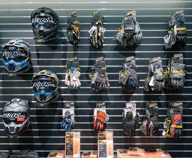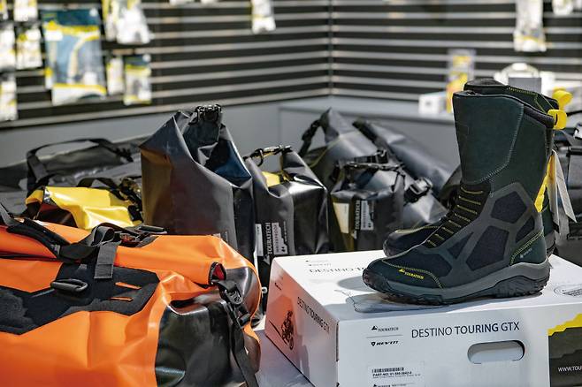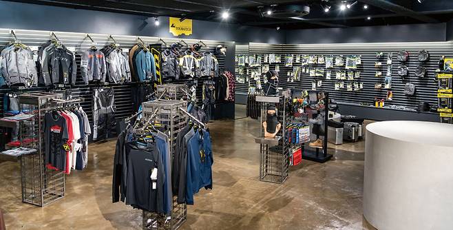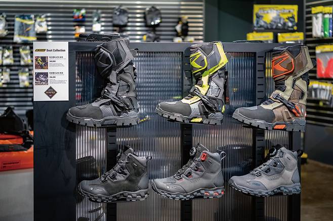 어드벤처 라이더가 정신 차리기 어려울 정도로 매력적인 아이템이 가득한 공간이다. 브랜드마다 구역별로 나뉘어 있으며 많은 제품을 한눈에 보고 선택할 수 있도록 마련됐다. 특히 제품의 실제 컬러와 디자인을 제대로 확인할 수 있도록 조명 하나하나까지 신경 쓴 모습이다.