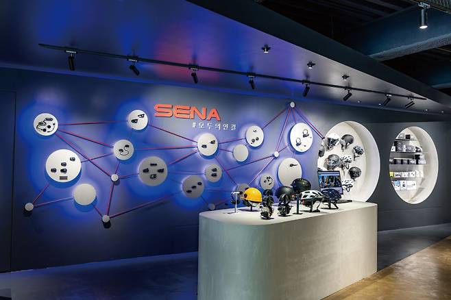 쇼룸 한편에는 현재 판매 중인 세나 제품 50S와 스파이더, 스마트 자전거 헬멧 R2 에보 등을 직접 착용하고 성능을 확인할 수 있다. 일반적으로 헬멧에 장착하여 사용하는 인터컴 제품의 경우 별도의 헤드셋에 설치되어 있기 때문에 더욱 정확한 청음이 가능하다. 기존의 사전 예약 방식에서 영업시간 내 언제든 방문하여 자유롭게 살펴볼 수 있는 방식까지 개선하여 고객 편의성을 높였다. 이전부터 높은 품질의 브랜드와 제품군으로 많은 인기를 끌었던 만큼 더 많은 관심과 인기가 기대된다.