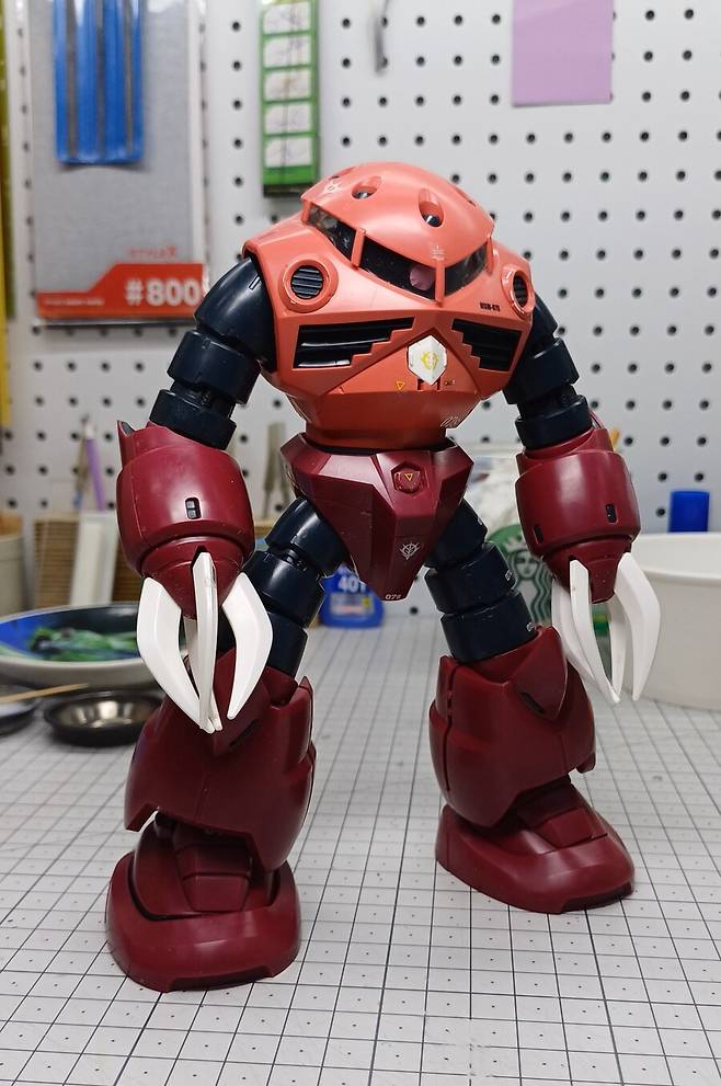 다니는 공방에 잦은 물리적 사고가 있었고 공방장께서 이때문에 이사를 결심해 천천히 준비를 하던 찰라에, 작년 말 즈음 또 다시 침수피해가 발생했었습니다. 그렇게 작년 말 부터 올 3월까지 짐정리와 이사로 정신없이 시간을 보냈고 3월부턴 GF작업을하느라 침수피해가 일어나기 전까지 작업해왔던 킷들은 손도 못대고 봉인해왔습니다. 개인적으로도 또 사회적으로도 별별 일들이 많이 일어나서 유독 시간이 더 빠르게 지나간 것 처럼 느껴지네요. 벌써 올해도 곧있으면 중반이란게 놀라울 따름입니다. 중단한 킷들이 있음에도 공방 회원분께서 만드신 MG즈고크(샤아전용기)가 너무 이뻐서 다른 작업들은 차치하고 MG즈고크 작업을 시작하게됐습니다. 유독 눈길을 끌었던 요소가 메탈 포인트를 이쁘게 잘 넣어줘서 무게감도들고 마치 메탈 완제품 느낌으로 완성하신것에 매료된 것 같네요. 오래간만에 즐겁게 작업을 진행했습니다.