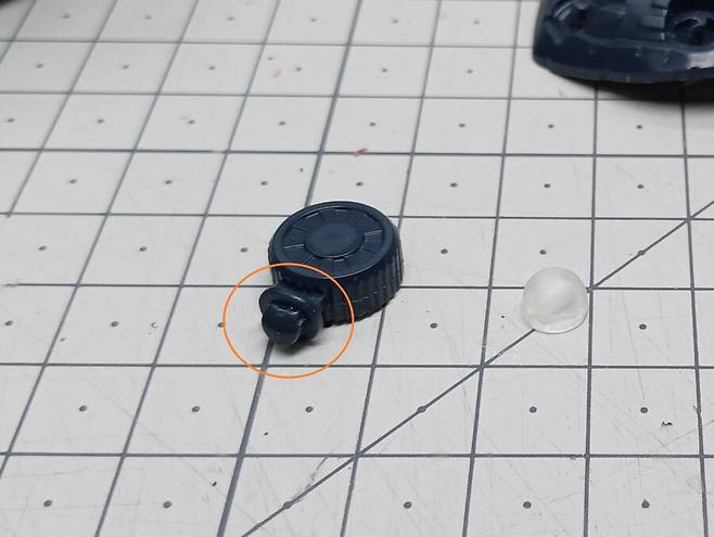 클리어 파츠가 결합하는 모노아이부분의 양각 몰드를 잘라내고 옵션파츠를 붙여줬습니다.