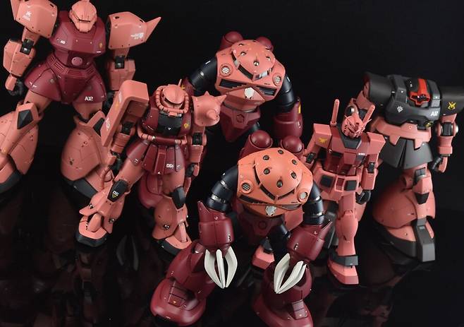 맨 앞 중앙의 즈고크만 제가 만들었고 비슷한 핑크계열끼리 묶어서 촬영해봤어요.