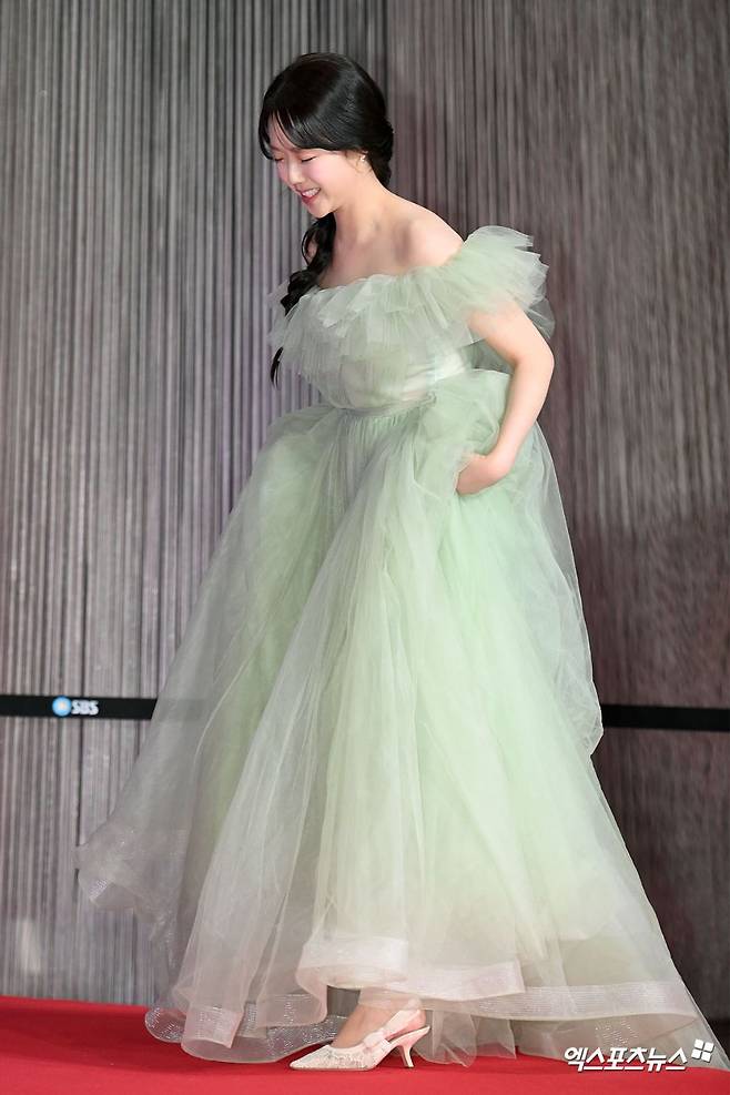 SBS 연예대상 레드카펫에는 ‘런닝맨’ 팀의얼굴인 송지효와 지예은이 나란히 모습을 드러냈다.