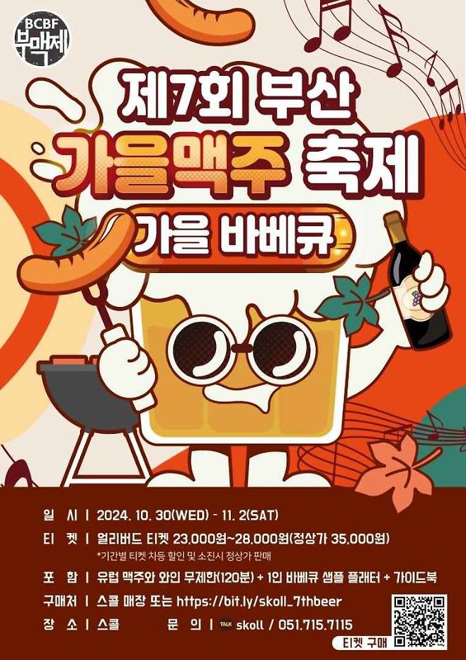 주요 프로그램은 ▲BEER ZONE. 유럽 생맥주와 와인을 2시간 동안 무제한 ▲EVENT ZONE. 부맥제에 어울리는 재미있는 이벤트와 다트 게임. 참여시 경품 ▲MUSIC ZONE. 가을과 잘 어울리는 밴드 공연 진행 ▲축제 FOOD ZONE. 스콜 셰프가 정성껏 만든 훈연한 바비큐를 메인으로 주류와 함께 즐기기 좋은 안주 체험 ▲할로윈 PHOTO ZONE. 10월 31일, 할로윈에 맞춰 준비된 포토존 ▲케그 BOMB. 주문한 맥주가 케그의 마지막 맥주일 때마다 시크릿 상품 지급 등 다채로운 부산 가을 맥주 축제의 프로그램이 진행된다.