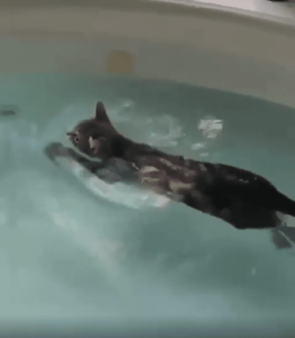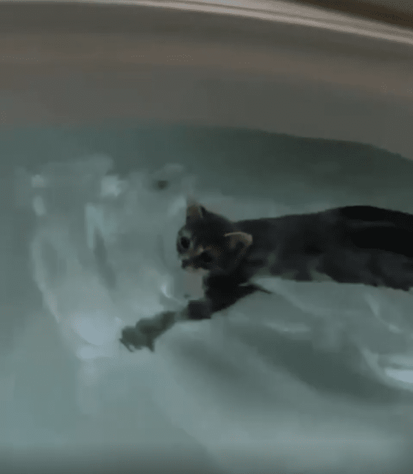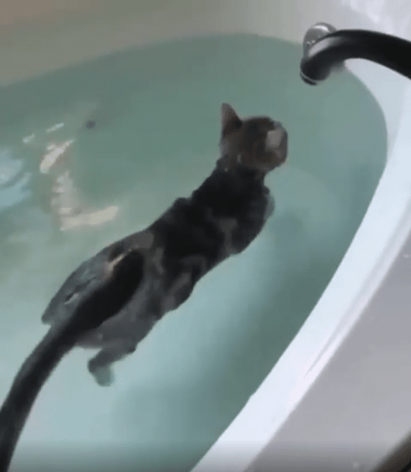 욕조에서 침착하게 수영하는 고양이의 놀라운 모습