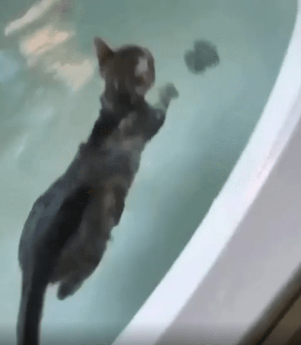 사실 고양이는 본능적으로 물을 두려워하는 경향이 있습니다. 그런데 이 고양이처럼 능숙하게 수영을 한다는 것은 고양이가 환경에 대해 얼마나 안정감을 느끼고 있는지를 보여줍니다. 신뢰와 자신감이 없으면 이런 자연스러운 움직임은 어려울 것입니다.