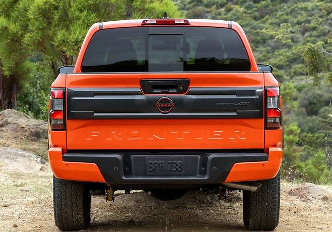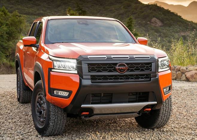 2025년형 프론티어의 새로운 외관은 견고하고 각진 모습을 한층 더 강조하며, 리뉴얼된 전면 파시아, 그릴 및 범퍼 디자인, PRO-X/PRO-4X 모델의 새로운 테일게이트 피니셔, 새롭게 디자인된 대시보드 트림, 새로운 17인치 알로이 휠 디자인 및 '애프터번 오렌지'라는 새로운 색상이 추가되었습니다.