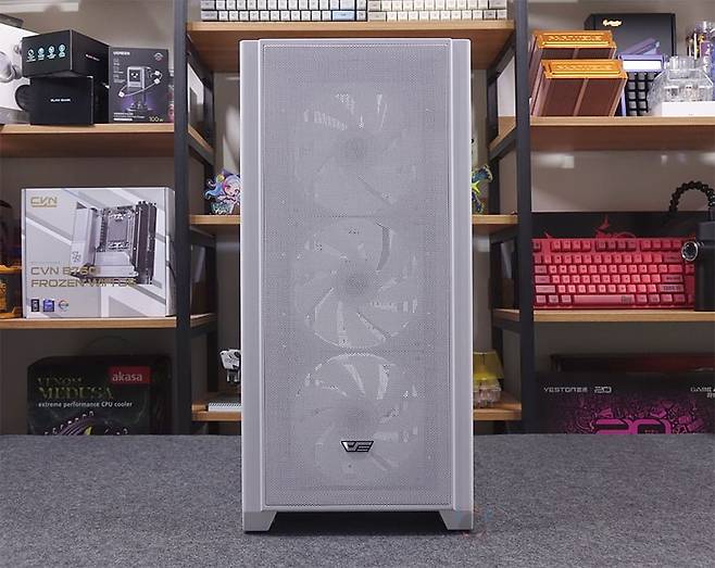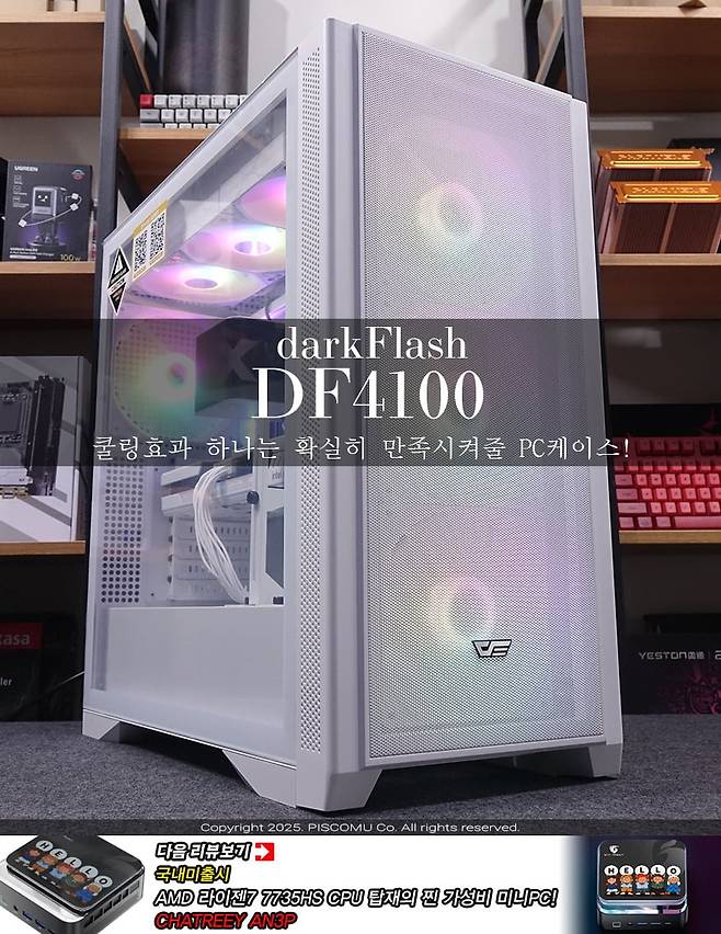 현재 조립 PC를 맞출 때 PC케이스 선택을 크게 2가지 중에 고려해서 선택할 수 있습니다. 인테리어 감성을 생각한 시각적 부분과 내부 쿨링효과를 고려하는 부분이죠. 쉽게 말하면, 전자는 컴퓨터 어항케이스를 말하고, 후자는 메쉬케이스를 말합니다. 물론, 현재 시장 주름은 컴퓨터 어항케이스지만, 어항케이스 특성인 전면 강화유리로 인해 쿨링효과가 떨어지는 건 분명 아쉬운 부분이라 내부 발열을 고려해 쿨링효과를 더 중요하게 생각하는 소비자는 메쉬 케이스를 선택하고 있습니다. 또한, 케이스 폭(Width)에서도 컴퓨터 어항케이스보다 메쉬 케이스가 기본 케이스형태이기 때문에 더 슬림하기 때문에 선택하는 경우도 있죠. 그래서, PC케이스 제조사들은 시장에 맞춰 항상 이런 2가지 유형의 제품들은 계속 선보이고 있는데, 국내 PC케이스 시장에서 인지도가 높은 다크플래쉬(darkFlash) 역시 꾸준히 이 2가지 유형으로 나오고 있으며, 최근 또 하나의 쿨링 퍼포먼스에 중점을 든 메쉬 케이스가 나왔습니다. 바로, DF4100 MESH ARGB BTF(이하 DF4100)입니다. 그래서, 이번시간에는 다크플래쉬의 DF4100 MESH ARGB BTF PC케이스를 한 번 만나보도록 하겠습니다. 그럼,