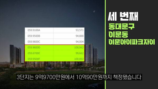 세 번째. 서울 동대문구 이문동 이문아이파크자이다. 총 4321가구인 매머드 단지다. 1단지, 2단지, 3단지 중 3단지 일부 물량이 미분양으로 남아 있다. 지난해 11월 분양 당시 1단지와 2단지는 모두 팔렸지만 3단지 물량 134가구 중 122가구가 남았다. 91%가 미계약된 것.