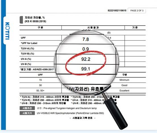 한국의류시험 연구원에서 자외선 차단효과와