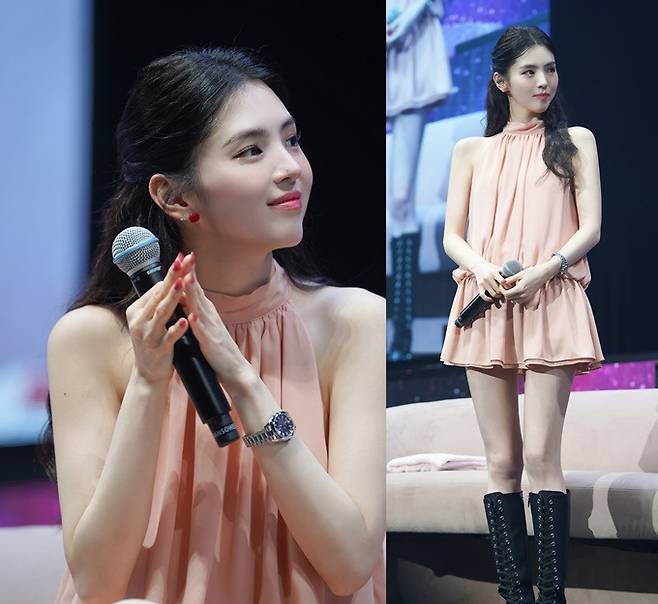 이날 한소희는 러블리한 핑크 홀터넥 미니 원피스와 고급스러운 오메가 타임피스로 특유의 사랑스러운 매력으로 팬들의 시선을 사로잡았다.