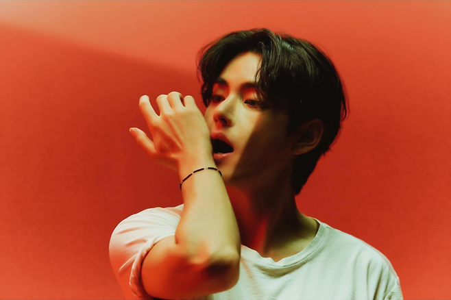 해당 사진은 방탄소년단의 앤솔러지 앨범 ‘프루프(PROOF)’ 컬렉터스 에디션에 실린 화보다. 사진 속 뷔는 붉은 벽에 기대 포즈를 취하고 있다. 뷔는 깔끔한 착장에 팔찌로 멋스러움을 더했다. 뷔의 얼굴에 드리운 조명이 한층 그윽한 분위기를 자아냈다.